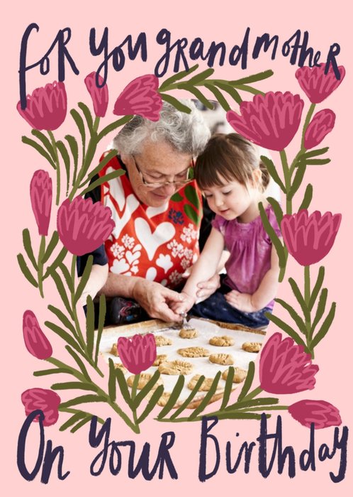 Katy Welsh Floral Theme Birthday Photo Upload Card