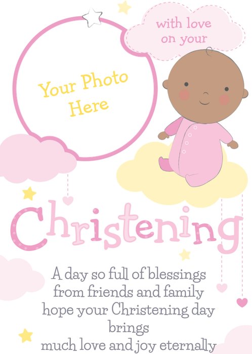 Lemon And Baby Pink Personalised Photo Upload Happy Christening Day Card