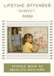 "Lifetime offender suspect: Elissa. Offence: being an absolute nightmare."