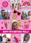 A cute and sentimental Mother's Day card featuring a playful and warm design, featuring cute, playful cats in shades of orange, grey, and black. These cartoonish felines frolic across the card, each striking a unique, joyful pose. There are four photo upload areas in each corner of the design