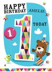 Little Balancing Bear Personalised Happy 1st Birthday Card