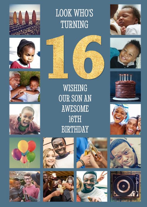 Look Who's Turning 16 Multi Photo Upload Birthday Card For Son