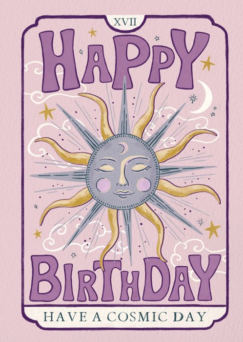 Magical Have A Cosmic Day Illustrated Astrological Sun Tarot Birthday Card