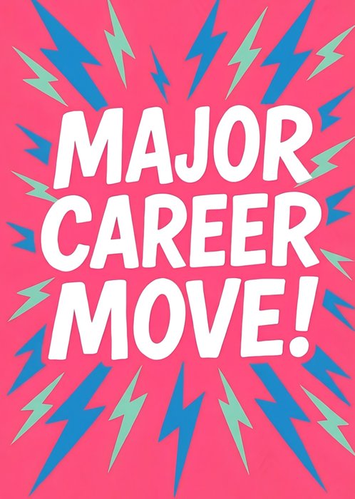 A bold, colourful design featuring white hand lettered text surrounded by blue and green lightning bolts on a pink background.