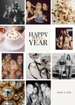 Featuring a grid of 12 squares, 6 of which are photo uploads, and the others contain modern images of confetti, cake and candles, disco balls, glassware & typography, all on a white background.