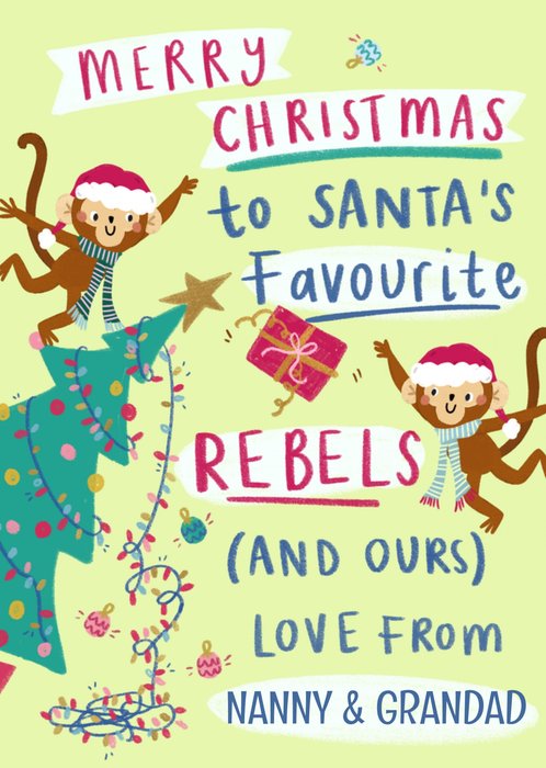 Merry Christmas To Santa’s Favourite Rebels Nanny And Grandad Christmas Card