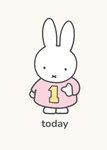 Featuring an illustration of Miffy wearing a pastel-pink jumper with a big yellow number one on the front.