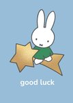 Featuring an image of Miffy on top of a gold shooting star on a blue background with white typography at the bottom of the card.