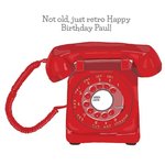 Modern trendy retro illustrated design with an old red dial up telephone and type font card.Text reads: "Not old, just retro Happy Birthday Paul!". Not old, just retro Happy Birthday Paul can be personalised.