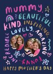 "Mummy, Beautiful, Kind, Inspiring, Lovely, Amazing, Incredible, Funny, Happy Mother's Day."