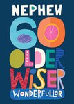 Nephew 60 Older Wiser Wonderfuller Typographic Birthday Card