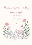 Featuring an illustration of adorable elephants surrounded by vibrant flowers.