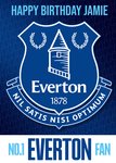 Front of card: Featuring the Everton badge. Text reads: "Happy birthday Jamie Everton 1878 nil satis nisi optimum (Nothing but the best is good enough) no. 1 Everton fan". 'Happy birthday Jamie' can be personalised!
