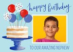 Okey Dokey Illustrated Birthday Cake And Balloons Nephew Photo Upload Birthday Card