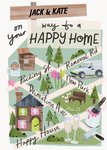 Front of card: Illustration of a road map with a house, paint and champagne and fun road names.Text reads: On your way to a happy home . Editable recipient's name