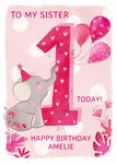 Party Elephant 1st Birthday Card For Sister