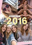 Featuring four photo upload panels in a grid layout with polka dot corner borders, star and heart doodles, and the large year “2016” in the centre with a small “party like it’s” banner and “happy” and “bday” letter beads.