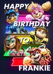 "Happy birthday to Frankie". 'Frankie' can be personalised!