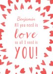 Personalised All You Need Is Love Heart Print Valentine's Day Card