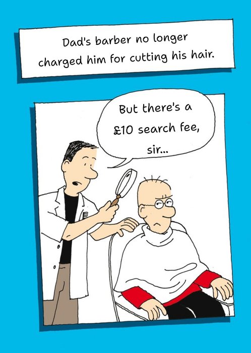Personalised Funny Father's Day Cards. Treat your dad to a personalised father's day card. Send with a moonpig father's day gift. - Dad's barber no longer charged him for cutting his hair.