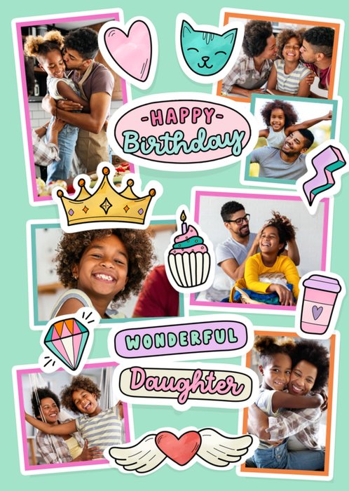 Photo Collage Stickers Wonderful Daughter Birthday Card