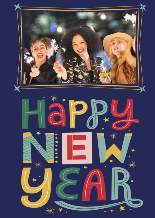 Photo Frame With Colourful Typography On A Dark Blue Background Happy New Year Photo Upload Card