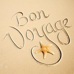 Bon Voyage written on a sandy beach with starfish