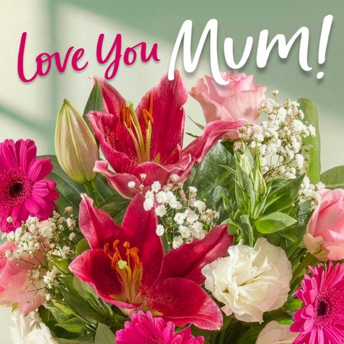 Photographic Pink Bouquet Love You Mum Mother's Day Card