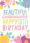 Pigment - Bright, bold floral illustration on a cream background. The typographic non editable part of the caption reads Beautiful Granddaughter Happy Editable 18th Non editable Birthday.