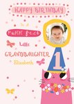 Pink Cat First Birthday Granddaughter Photo Upload Card