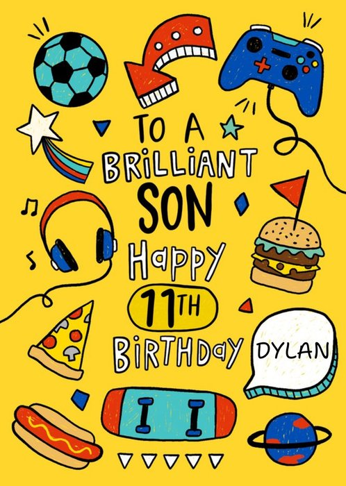 Pizza and Gaming To A Brilliant Son Happy 11th Birthday Card