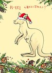 handrawn Illustration of a kangaroo wearing a santa hat