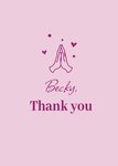 Featuring a line drawing of praying hands with small hearts and dots above, & typography below, all on a pink background.