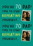 “You're 70 Dad! Time to start repeating yourself... You're 70 Dad! Time to start repeating yourself...".