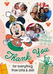Featuring an illustration of Minnie Mouse standing in front of 3 photo upload areas, surrounded by Minnie themed Christmas decorations, presents and editable text.