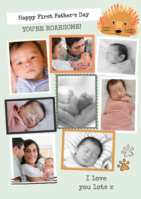 Roarsome First Father's Day Photo Upload Collage Card