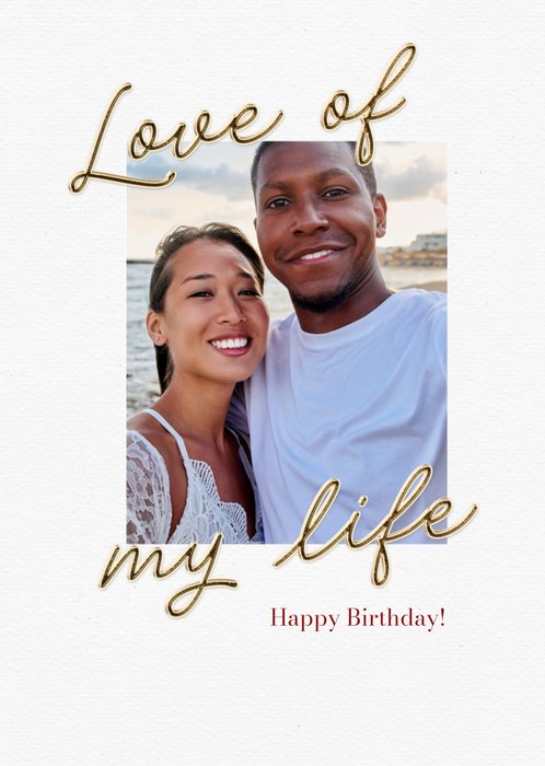Romantic Love Of My Life Gold Typography Photo Upload Card