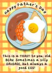 "Happy Father's Day. This is a TOAST to you, old BEAN. Sometimes a silly SAUSAGE, but always a good EGG!"