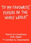 "To my favourite person in the whole world** *Terms & Conditions May Apply. **Limited to Manchester."