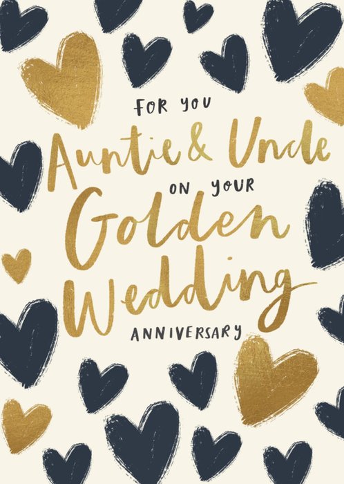 A sweet greeting card covered in playful red and dark navy hearts, with bold hand-drawn lettering celebrating a Ruby Wedding Anniversary, all set against a warm cream background.