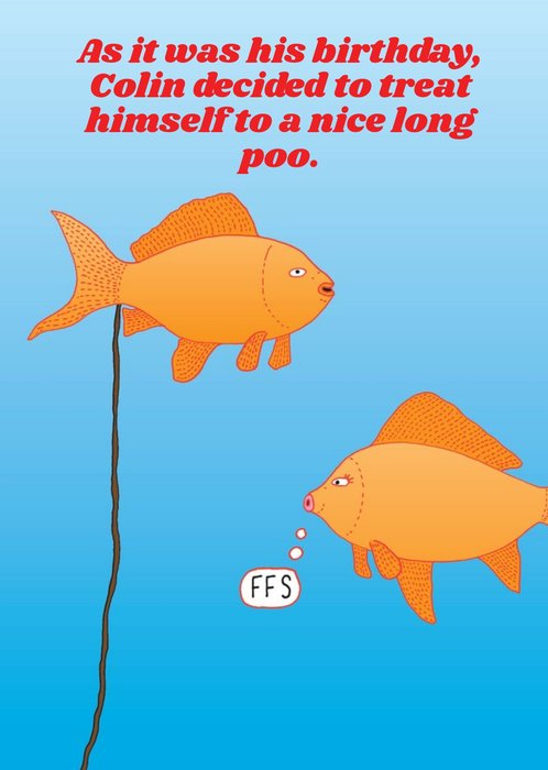 Rude Birthday Card - Goldfish Greeting Card - As it was his birthday, Colin decided to treat himself to a nice long poo. FFS.