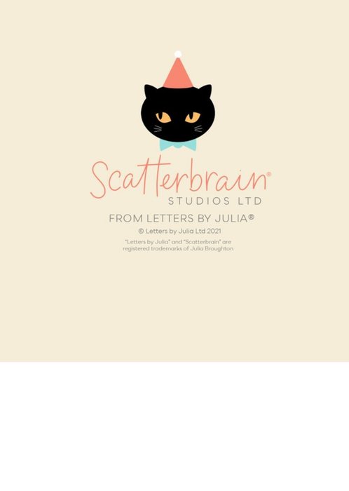Scatterbrain And Baby Makes Three! Card. Front of card:Large peach cloured circle containg text on a beige background which has black geomterical shapes on it. The text in the center reads: "Baby On Board", and text at the bottom of the card that reads "Congratulations Stephanie!" this text is editable.