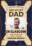 Front of card: Illustration of Scottish flag with shield and photo upload in centre Text reads: "THE UNDISPUTED GREATEST DAD IN GLASGOW AND THE REST OF THE UNIVERSE GRAHAME MACKAY" With editable text options.