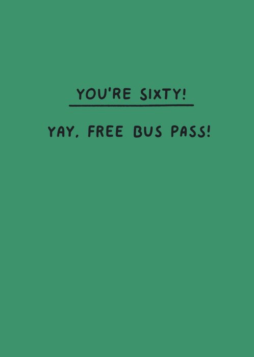 Scribbler You're Sixty Yay Free Bus Pass Typographic Birthday Card
