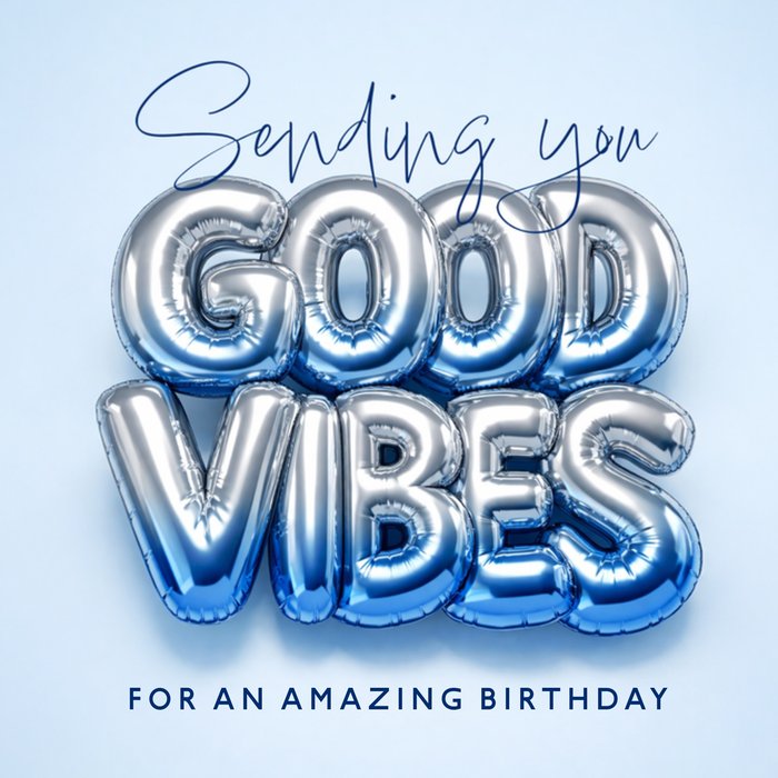 Sending You Good Vibes Metallic Balloon Lettering Birthday Card