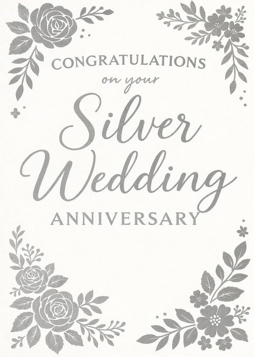 Featuring silver floral corner bouquets and elegant script typography on a white background.