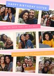 A modern design featuring nine photo strip style upload frames with cream borders and simple modern typography on a soft pink background.