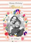Stripes And Flower Border Personalised Photo Upload Birthday Card For Niece