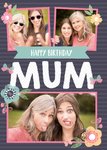 Stripes And Flowers Multi-Photo Happy Birthday Card