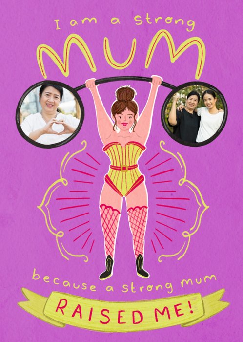 Strong Mum Weights Illustrated Photo Upload Mother's Day Card